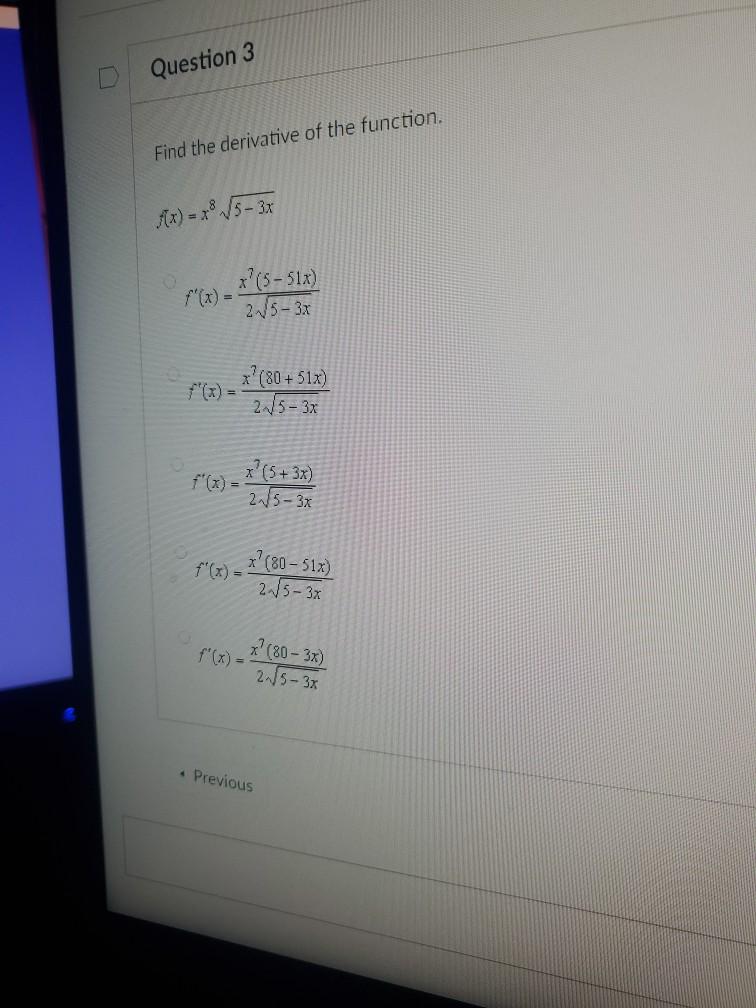 Question 1 Find The Derivative Of The Function T Chegg Com