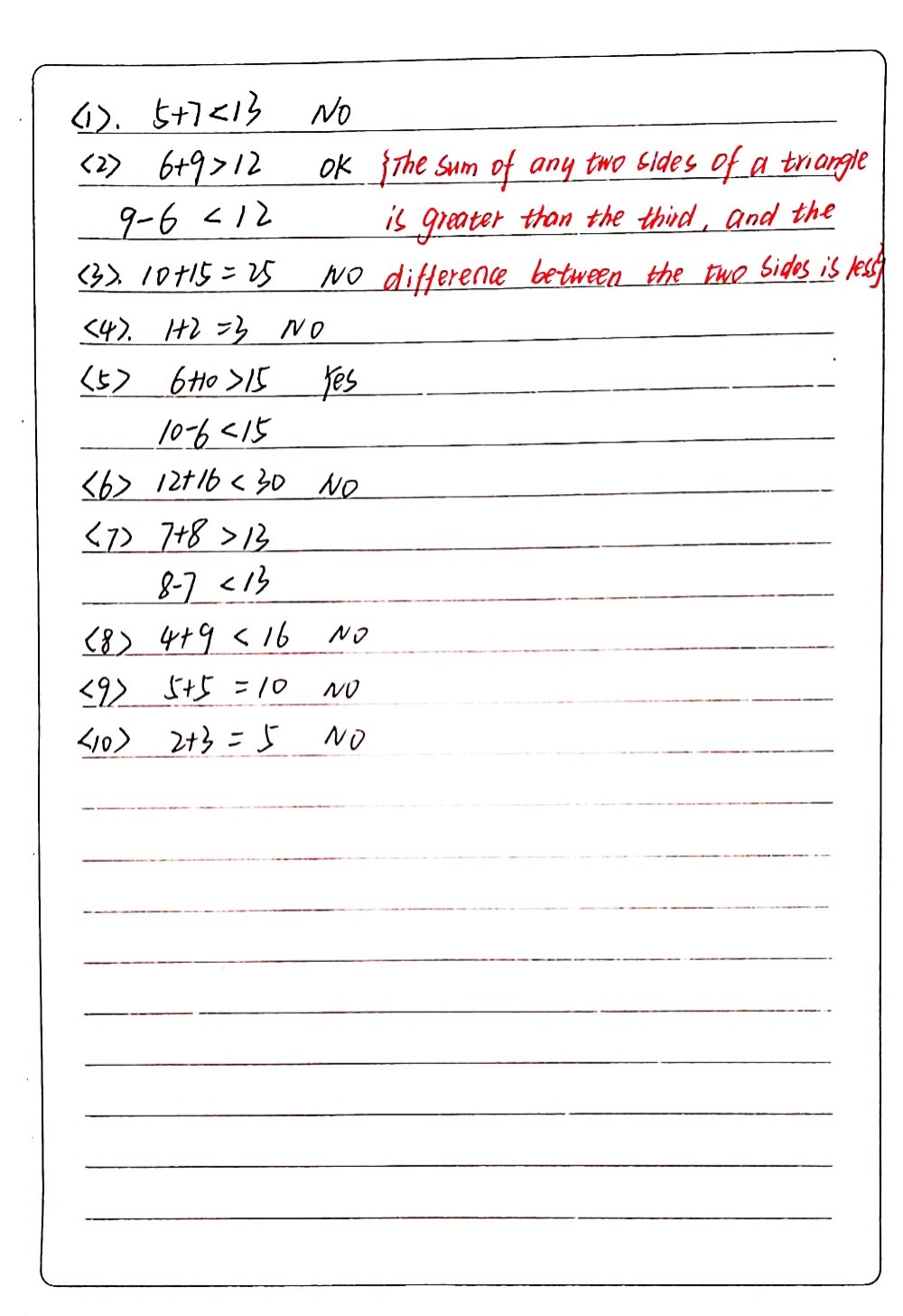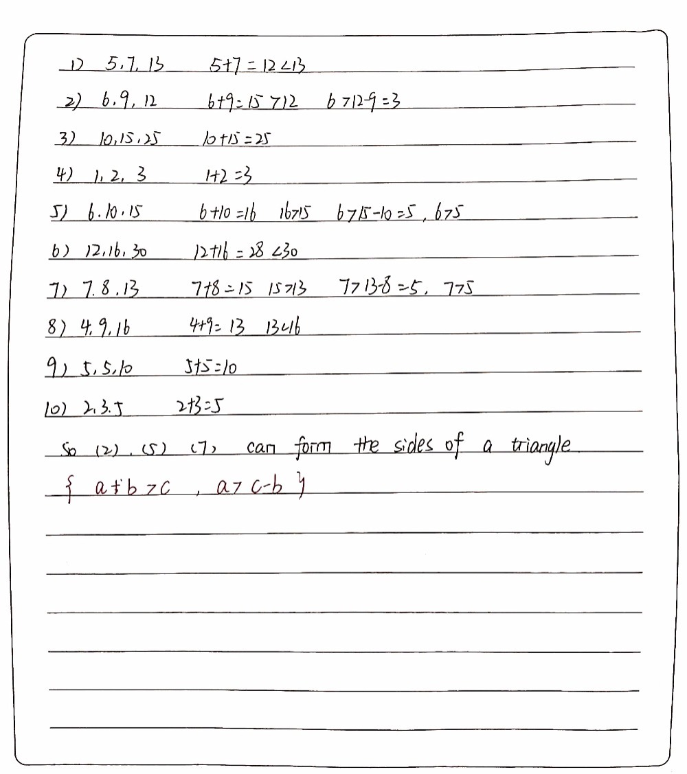Check Whether It Is Possible Ti Have A Triangle With The Given Sides 1 5 7 132 6 9 123 10 15 254 1 2 35 6