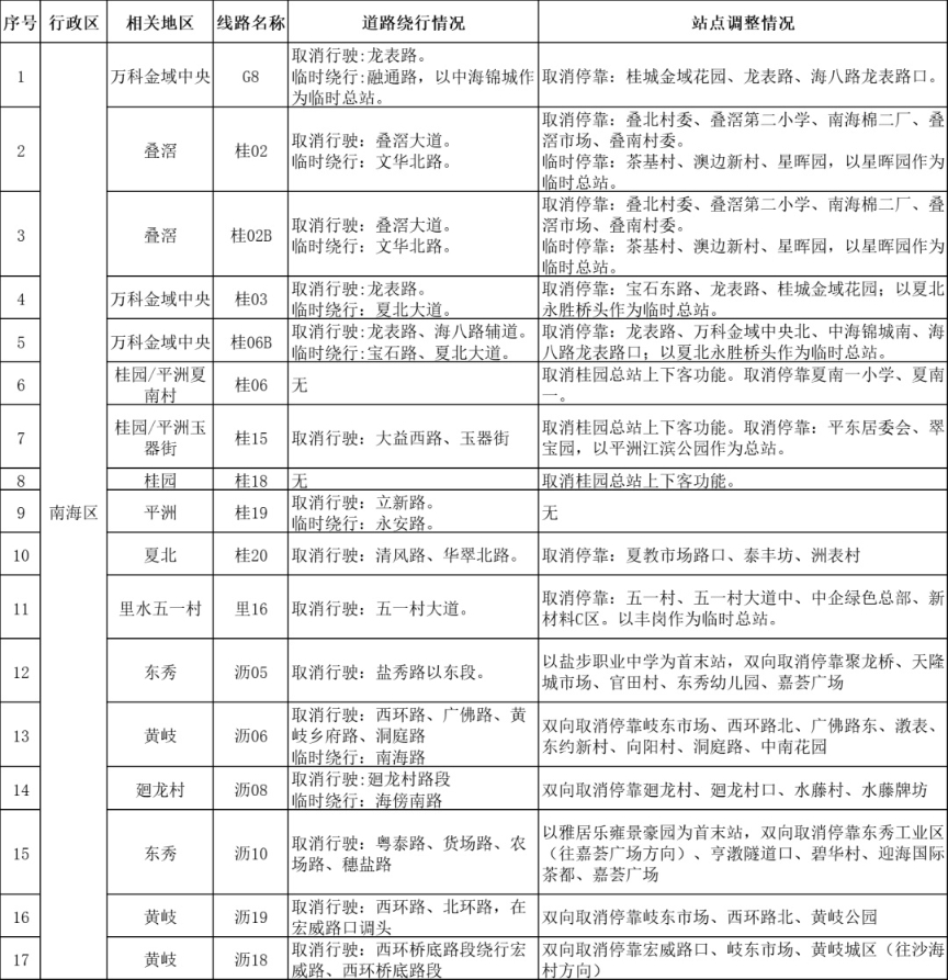 6月6日起 佛山南海部分公交站点临时取消停靠 广州日报大洋网