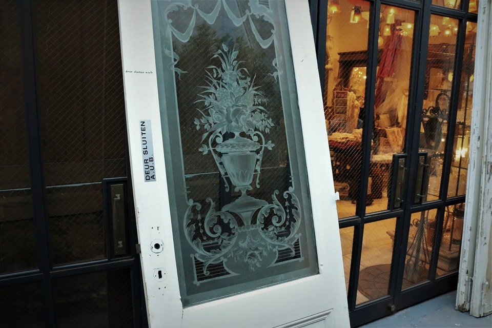 薔薇とパイナップルが生けられた花瓶の柄が美しい エッチングガラスドア 4076 建材など ドア パネルなど Majorelle