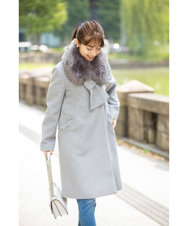 冬の 可愛い を更新するファーティペット付きポケットりぼんaラインコート Machery マシェリー Tocco Closet トッコクローゼット Collection